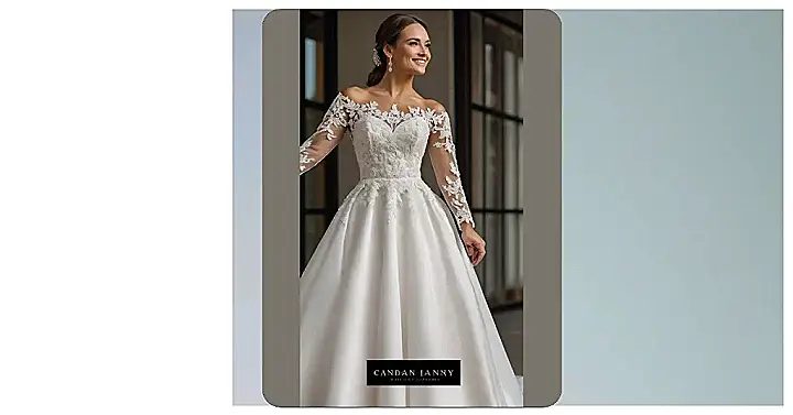This dress is totally giving off “elegant princess” vibes, but with a modern twist thanks to those off-the-shoulder sleeves. It’s like a fashion mashup of Cinderella meets a super cool influencer. You could totally rock this dress and make even your pickiest relatives say, “Wow, she actually found a good one!” Just promise you’ll send us a pic!