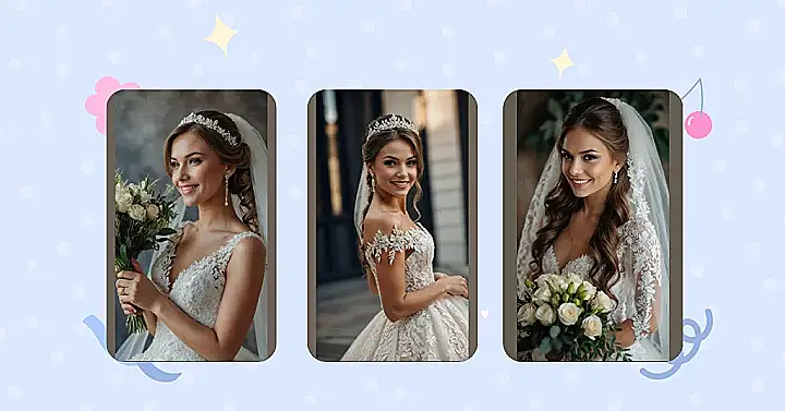 Picking the perfect veil and crown combo is like choosing your superpower for the day. Do you go for a dramatic long veil that flows behind you, making you feel like a total movie star? Or a cute birdcage veil for vintage vibes? And don’t even get me started on crowns – from delicate headbands to full-blown tiaras that scream “I am royalty!” It’s all about finding that perfect touch of sparkle and drama to make your amazing hairstyle shine even brighter as you celebrate.