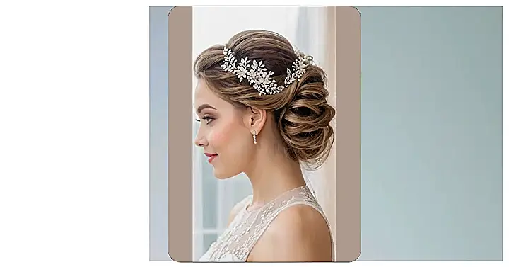 So, you think having short hair means you can’t rock a totally awesome bridal look? Think again! Check out this hairstyle, it’s like a fancy updo had a baby with a chill braid, all nestled neatly at the back. Then, BAM, add a sparkly headband and you’re basically a woodland princess ready to say “I do.” Who needs long hair when you can be this effortlessly gorgeous?