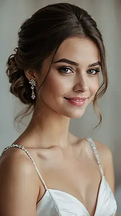 What’s super cool about a wedding updo like this is it’s basically like putting your hair in a fancy, secure little fort. No worrying about unexpected gusts of wind turning you into a human dandelion during outdoor photos, or your hair getting accidentally stuck in your lip gloss during the emotional vows. This brilliant style means you can smile, laugh, and probably even sneak a second piece of cake without a single hair-related drama. It’s the ultimate “I woke up like this (after a few hours with a super talented stylist)” look that makes sure you look picture-perfect from the first “I do” to the very last dance move.