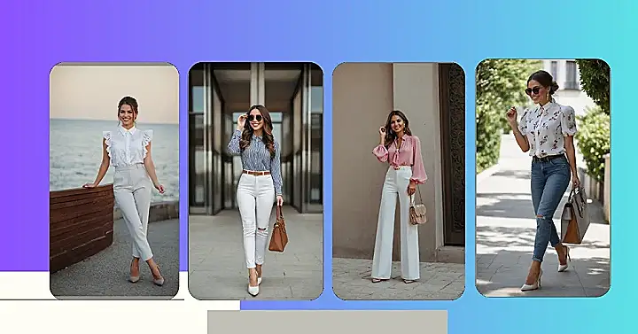 Putting together a full blouse outfit, complete with crisp white pants and stylish heels, takes that feeling up a notch. It’s like you’re saying, “Yeah, I’m dressed to impress, and I might even pretend I know exactly what I’m doing.” Walking on cobblestones in heels is a brave fashion choice, proving that this look is all about confidence, or maybe just a really good balancing act. Plus, white pants always feel a little daring, like you’re living on the edge and just hoping no one spills ketchup near you all day.