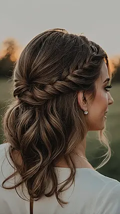 Getting ready for a wedding as a bridesmaid can be a whirlwind, but your hair doesn’t have to add to the chaos! This stunning shoulder-length style, with its elegant braids flowing into bouncy waves, is seriously a genius move. It’s perfect for those moments when you need to dab away a tear (happy tears, of course!) or break out a spontaneous dance move without your hair ending up stuck in the gravy. Plus, it looks effortlessly chic, making sure you’re picture-perfect from the ‘I do’s’ to the last dance without a single hair-stress moment.
