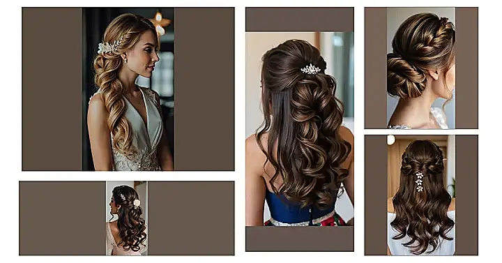 First up, we have the beloved half-up hairstyle. It’s the ideal choice when you want to look sophisticated but don’t want the fuss of hair constantly in your face. It’s super easy to accomplish, and whether you’re sporting long, medium, or short hair, it seamlessly works for any length. Toss in some braids or curls, and you’re officially ready for the spotlight!