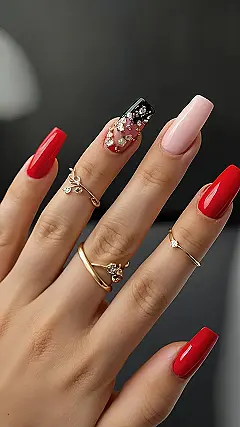 Forget the ordinary, these nails are making a statement! They’re not just red, they’re *red* – like stop-sign-level attention-grabbing. And the contrast between the solid red and the other nail art? Chef’s kiss! Now all you need is a perfectly coordinated outfit, and you’re ready for your close-up.