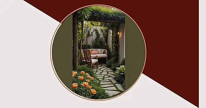 And seriously, check out that cozy corner – it’s basically an invitation to ditch your screens and just *relax*. That stone path, dotted with grass, looks like a VIP walkway leading straight to the comfiest outdoor couch ever, complete with fluffy pillows just begging for you to sink into them. Add in that warm, glowing lantern, and this small garden transforms into the perfect spot for late-night chats with friends or just chilling out and listening to nature’s soundtrack. It’s got all the good feels packed into one perfectly designed, totally Instagram-worthy space!