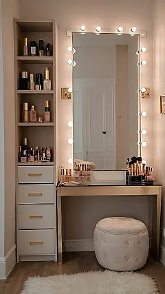 Imagine turning a small space, like your closet or extra room, into the ultimate dressing haven. A lavish setup with mirrors that reflect not just your gorgeous face but also your fabulous personality! The right lighting, elegant storage solutions, and a sprinkle of creativity can transport any boring corner into an arena for makeup magic, perfect for both a professional setting and a personal retreat.