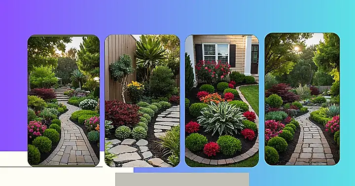 Your front yard is basically your house’s profile picture, right? It’s the first thing anyone sees, so why not make it awesome? This front yard garden isn’t just some boring patch of grass; it’s got a cool stone path that looks like it’s practically inviting you to follow it, maybe hoping you’ll discover hidden treasure or at least find the doorbell. Forget sad-looking bushes, these plants are like a whole crew of colourful characters ready to greet anyone who walks by, making your house look way more interesting than just four walls and a roof.