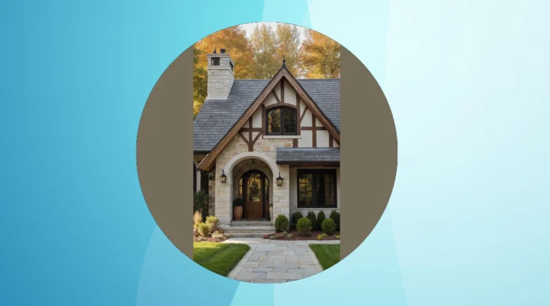 Forget dusty old castles; this house is what happens when medieval charm gets a serious style upgrade! Peep those awesome dark wood beams crisscrossing the light walls – that’s the classic Tudor vibe, saying ‘I’m historic, but also super trendy.’ With its sturdy stone facade, that inviting arched doorway, and a roof that looks like it could withstand a dragon (or at least a really bad storm), it’s got all the fairytale feels without needing a moat. Basically, it’s giving ‘Hogwarts, but make it suburban chic’ – and we are totally here for it!