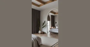 And check out that giant mirror – it’s not just for epic outfit selfies; it basically doubles the coolness factor of the room and makes it feel huge. Plus, those tall, feathery plants standing guard are like something out of a whimsical dream, adding a wild but totally chic vibe to the whole setup. This room makeover isn’t just about new stuff; it’s about creating a personal sanctuary where everything whispers, ‘Stay a while, everything’s amazing.’ Who knew so much beige could bring so much joy (and make you want to redecorate your entire life)?