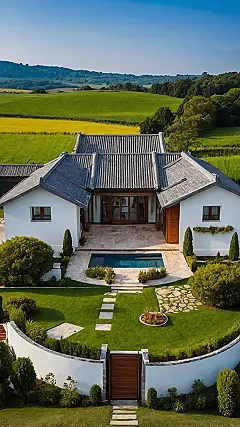 Check out this American house design! It looks like it straight-up won the lottery of homes. You’ve got the fancy curved roof windows that probably let in sunshine perfect for dramatic movie scenes, and those super neat hedges along the driveway look like they get a haircut every single day. This kind of house screams “Yep, I live here, and my lawn game is strong,” which is totally a vibe in some parts of America. It’s the kind of place you imagine driving up to slowly, maybe with a secret agent soundtrack playing in your head.