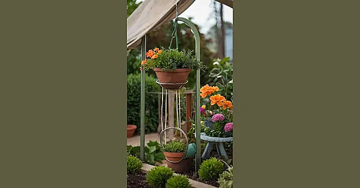 Check out this vertical garden setup! It’s like a plant apartment complex. Somebody decided two pots just weren’t enough, so they invented this hanging, two-story plant palace. Bet the plants on the top floor have a serious view, and maybe the ground floor residents complain about leaf litter falling from above.