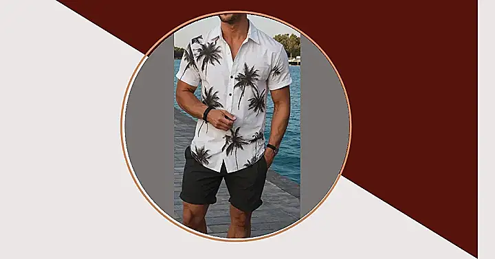 Who needs a plane ticket when your outfit is already a tropical getaway? This dude’s rocking a shirt so full of palm trees, you can almost hear the ocean waves! But let’s not forget the unsung hero of any warm-weather wardrobe: those super cool dark mens shorts. They’re the ultimate sidekick, making sure you stay comfy and look sharp, whether you’re strolling by the beach or just dreaming of your next summer escape. Forget boring jeans, these shorts are here to party!
