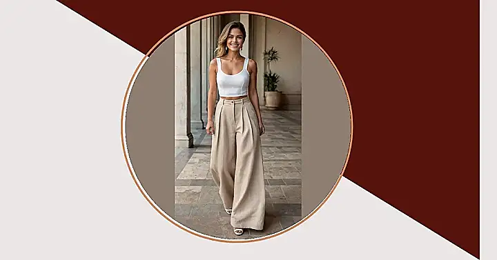 Wearing these linen pants is like telling the world, “Yes, I am comfortable, and yes, I look amazing doing it.” You can throw them on with a simple white top, some cute sandals like in the picture, and a straw bag, and suddenly you’re ready for anything from chasing waves to grabbing ice cream. Don’t even worry about the wrinkles; consider them little style statements proving you’re living your best, relaxed life. This linen pants outfit combo is the go-to uniform for looking effortlessly cool all summer long.
