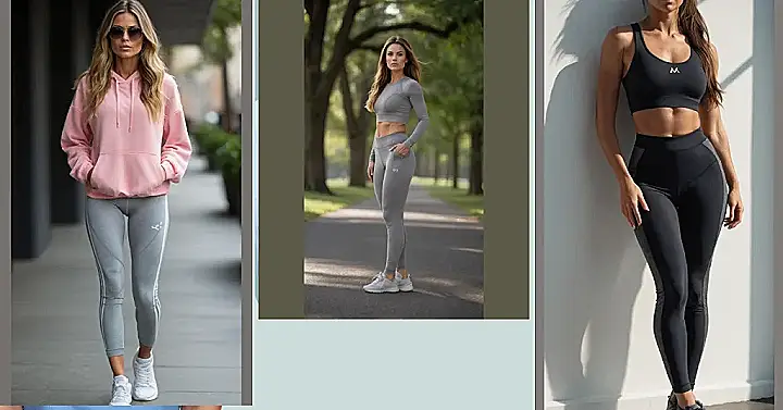 You know that feeling when you want to look effortlessly cool but also like you could break into a spontaneous dance battle or sprint for the last slice of pizza? This outfit gets it! Our model here is rocking a super comfy pink hoodie and sleek gray leggings, proving that active wear outfits aren’t just for hitting the gym. She looks ready to conquer the day, whether that means a super intense workout (maybe) or just expertly navigating the snack aisle at the grocery store. It’s the perfect blend of “I woke up like this” and “I totally put thought into looking this good… by throwing on a hoodie.”