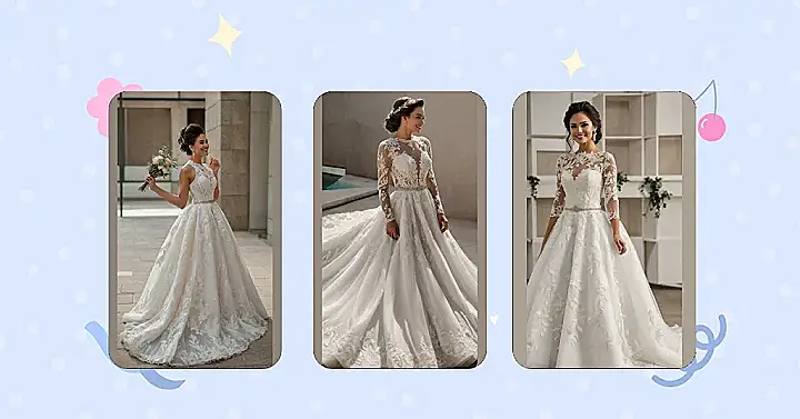 Whoa, this dress is definitely princess-level! You’ll be the queen of your own castle (or, you know, the venue you rented). It’s got all the lace and tulle to make you feel like you’re starring in your own rom-com, complete with a happy ending…and maybe even a slow-motion dance or two. Just remember to practice your royal wave!