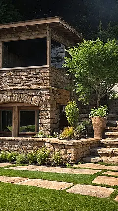 This backyard looks like it jumped straight out of a fantasy movie or a super cool video game level, doesn’t it? With those awesome stone walls and steps, it’s basically screaming for you to come explore. You could totally picture yourself chilling on one of those flat stone paths, maybe scrolling through your feed or just soaking up some sun after school. It’s proof that backyard landscaping isn’t just about having a patch of grass; it’s about creating a whole outdoor adventure zone that’s way more exciting than just another boring lawn.