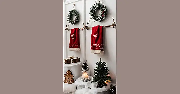 Brrr! Does looking out at that snowy window make you want to instantly grab a hot chocolate and snuggle under a mountain of blankets? Good news – you can bring all that cozy winter vibe *inside* without even stepping foot in the snow! This spot just nails “Diy winter room decor” with its frosty wreath, looking all sparkly like it survived an epic snowball fight. Those bright red towels are like a warm hug for your walls, and even the little tree looks happy to be chilling indoors. It’s amazing how a few simple, fun pieces can turn any corner into your personal winter wonderland, perfect for escaping the real cold.