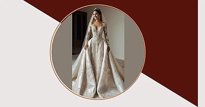 This dress is not just about looking good; it’s about feeling like a queen on your special day. The intricate lace and long sleeves give off a classy vibe. All you would need is some sparkly jewelry and you would be ready to dance the night away like nobody’s watching (even though they definitely are!).