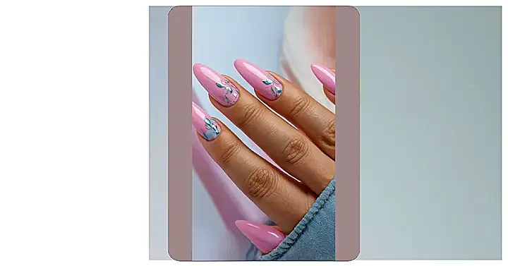 These aren’t just any pink nails; they’re summer pink nails ready to party! That bright bubblegum shade is like pure sunshine captured on your fingertips, instantly making you feel ready for beach trips and blasting your favorite tunes. Plus, those fancy silver and blue designs look like magical leaves just fluttered onto a couple of nails, adding a touch of fairy-tale cool to the super trendy stiletto shape. They’re definitely long enough to make a statement wherever you go.