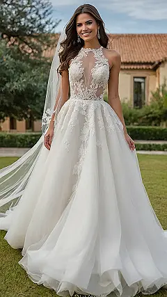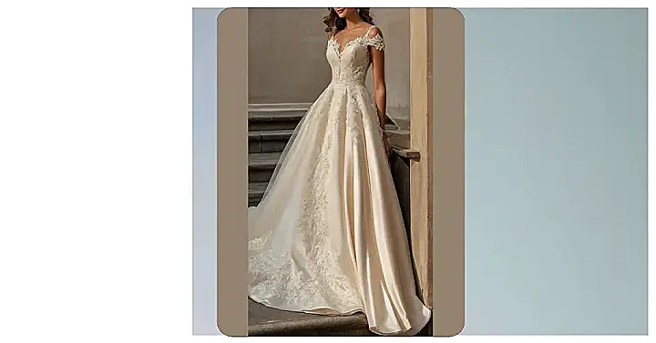 Whoa, this dress is definitely princess-level! You’ll be the queen of your own castle (or, you know, the venue you rented). It’s got all the lace and tulle to make you feel like you’re starring in your own rom-com, complete with a happy ending…and maybe even a slow-motion dance or two. Just remember to practice your royal wave!