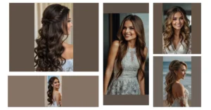 First off, let’s dive into the world of half up half down long hair. This classic style offers the perfect combination of elegance and fun, keeping your hair stylishly restrained while showcasing those magical cascading curls or waves. Perfect for framing your face with a soft touch, this hairstyle also complements the effortless charm of a shoulder dress. Ideal for 2023 and 2024 bridesmaids, it’s practically a crowd favorite.