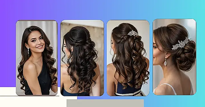 Check out those perfect curls and the sparkly bits tucked in! It’s like your hair got dressed up in its own fancy outfit. These little shiny pins and bouncy waves aren’t just decoration; they’re basically saying, “Get ready world, here comes someone who put some serious effort into looking amazing today!” You’d definitely feel ready to walk down an aisle, or maybe just strut into the cafeteria, looking like pure hair royalty.