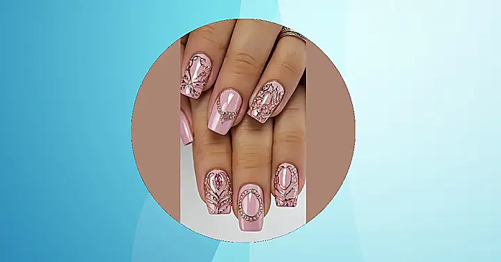 Feeling like your hands need a vacation even if you can’t go anywhere far? Well, these nails are basically a first-class ticket to a pink, sparkly paradise! With that dreamy light pink and those fancy gold swirls, it’s like your fingertips are ready for a poolside party or a fancy garden brunch. You might even accidentally curtsy when you reach for your iced tea, they’re so elegant! They truly scream “pink summer nails” that are ready for all the good vibes.