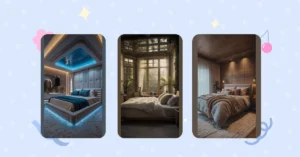 Check out this bedroom! It’s got that “I could sleep here for a week straight” vibe with a side of “maybe I should clean my own room more often.” That giant, super-comfy bed piled high with squishy pillows looks like a cloud just waiting for you to dive in. With the soft, warm lighting and that cool plant chilling by the window, it’s already got a pretty sweet, chill atmosphere perfect for, you know, just existing peacefully. You could totally pretend you’re in a fancy movie scene here, even without a single prop!