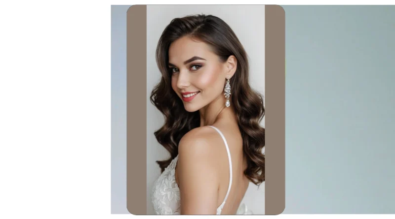 What makes this look extra special isn’t just the perfect hair; it’s the whole ‘I’m ready for my close-up’ vibe she’s rocking. Those awesome sparkly earrings totally amp up the glam factor, making this classic style feel fresh and exciting. It’s like her hair is saying, ‘Yeah, I’m sophisticated, but I also know how to have a good time and probably won’t spontaneously combust if it rains a little.’ This timeless elegance is why classic bridal looks stick around – they make you feel confident and fabulous, whether you’re walking down an aisle or just trying to survive another group project presentation. Plus, no weird hair regrets down the road!