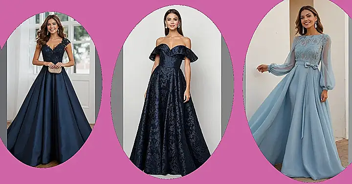 Check out this amazing blue classy gown! It’s so elegant, it looks like it just floated right off a Pinterest board dedicated to “how to look like royalty, but also approachable.” The detailed lace on the top and those dreamy, sheer sleeves totally make you feel like you could glide into any fancy event and instantly become the main character. You know, the one who doesn’t accidentally trip over their own feet while trying to make a grand entrance. This dress screams “sophistication” with a side of “let’s still have fun,” which is basically the dream combo.