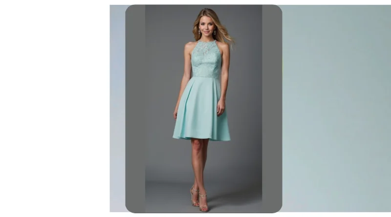 This stunning light blue dress is practically a billboard for “party time!” With its sleek halter neck and flowy skirt, it looks like it was made for spinning and laughing all night long. It’s that perfect “party-ready” length that lets you dance without tripping, yet still keeps things feeling super chic. Seriously, just looking at it makes you want to find the nearest disco ball and show off your best moves!