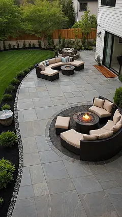 Looking at this incredible outdoor space, you might be thinking “simple backyard” probably means something else entirely in my house. But hear me out! What’s truly simpler than having a ready-made chill zone with enough comfy seating for your entire crew, plus not one, but *two* fire pits for ultimate marshmallow-roasting debates? No need to book a fancy resort or trek miles for a decent bonfire. Just slide open the door, plop down on those plush cushions, and enjoy your own personal slice of outdoor heaven. Seriously, the only hard part might be deciding which fire pit gets the prime s’mores action first.