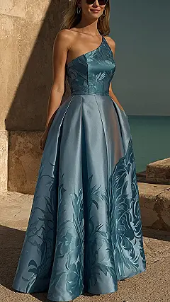 This dress isn’t just pretty, it’s got attitude! That flowing fabric looks like it’s ready for a dance-off, and the one-shoulder design is perfectly modern. Forget your boring jeans and t-shirts; this outfit screams confidence. You could totally picture this at prom, or even a super-fancy family wedding. Just add some sparkly shoes and you’re ready to steal the show. You’d be the most elegant charming person in the room!
