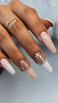 Seriously, who needs a snow globe when you’ve got these? The delicate white and pale pink base is super cute, and the little snowflake and pearl decorations are the icing on the cake (or should I say, the nail?). These nails are so stylish, they’d make even the grumpiest winter goblin crack a smile. They’re definitely the “it” nail design for anyone ready to embrace the chilly season in style.