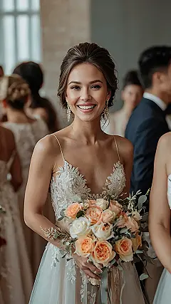 And let’s be real, who doesn’t love a good wedding? All those pretty dresses and happy people – it’s basically a giant party celebrating love! This picture captures that amazing wedding day feeling perfectly. This bride is the epitome of elegant wedding goals! Plus, that bouquet? It’s so pretty, I bet it smells amazing. Honestly, I’m already starting to plan my own perfect, elegant wedding look! This image has inspired me big time!