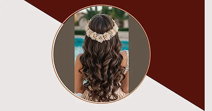Wow, check out those luscious locks! This hairstyle is so elegant it practically whispers “fairytale wedding,” even if it’s just for prom or a special birthday. Those gorgeous, wavy curls are like a waterfall of chocolate, and the tiny flower crown is the perfect touch of whimsy. It’s the kind of hair you’d want to spend hours admiring, probably while snacking on wedding cake (or maybe just a cupcake – no judgement!).