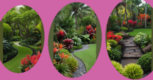 Check out this garden โ it’s so perfectly manicured, it looks like it’s posing for a magazine! But what if all those neatly trimmed bushes weren’t just for show? What if those vibrant green hedges outlining the path were actually a super-secret row of fragrant rosemary ready for your mom’s roast potatoes, or tiny blueberry bushes just waiting to burst with sweet fruit? This kind of design could turn a ‘look-don’t-touch’ space into a ‘grab-a-snack’ zone, where every corner might offer a delicious surprise. You’d practically be skipping down those stone paths, not just admiring the view, but planning your next fresh-from-the-garden snack attack!