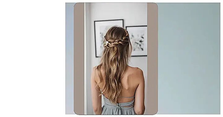 Plus, this half-up, half-down magic isn’t just pretty; it’s practically a superhero! It keeps your hair looking amazing while stopping those stray strands from photobombing your perfect smile or getting stuck in your lip gloss when you’re busy laughing at your date’s cheesy joke. The elegant braid woven across the crown adds that extra sparkle, making your outfit feel even fancier, even if you’re just wearing your favourite jeans. So go ahead, let your hair do the talking and enjoy that date, because with hair this good, you’re practically unstoppable!