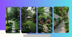 Making your backyard look this good isn’t rocket science, though it does involve a little plant magic! Notice how the big, flat stones create a cool, natural staircase, surrounded by vibrant green plants and that neat dark mulch? It’s not just pretty; it’s practical too, keeping weeds away and making everything pop. This kind of thoughtful backyard landscaping can turn a plain patch of dirt into your own personal nature retreat, perfect for chilling out or hosting a super cool outdoor hangout.