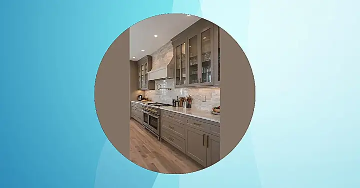Look at this place! This isn’t just any kitchen; it’s like something straight out of a cooking show where everyone wears crisp aprons and doesn’t accidentally set off the smoke detector. With those sleek gray cabinets, sparkling countertops, and that super-fancy double oven, you could totally pretend you’re a gourmet chef, even if your specialty is mostly microwaved popcorn. All those clear glass cabinets showing off the perfectly stacked glasses just scream “I’ve got my life together,” which is a whole mood we can get behind in this truly designer kitchen.