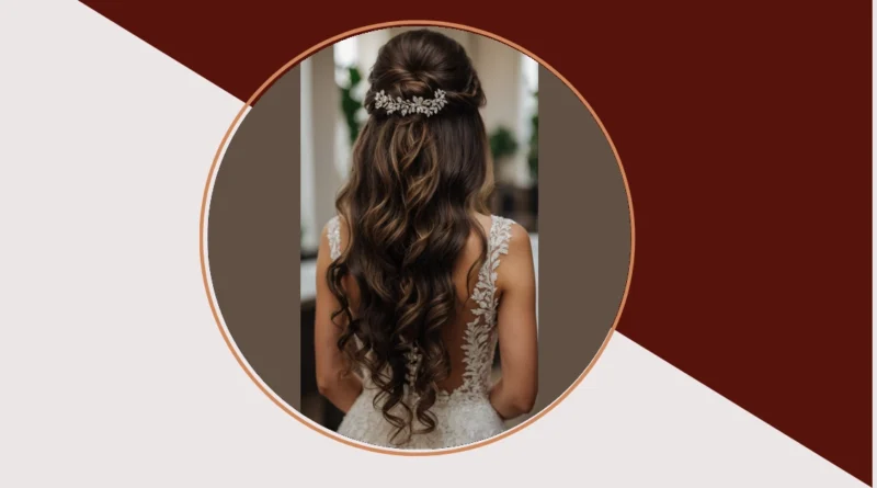 And let’s not forget the dazzling accessory woven into all that gorgeousness! That sparkly vine looks like it was plucked straight from a magical forest, adding just the right amount of fairy tale shimmer to the whole outfit. With those bouncy curls and that touch of sparkle, this stunning hairstyle is totally giving ‘glowing bride who also knows how to nail a TikTok dance’ vibes. It’s the perfect blend of classy and comfy, making sure you look amazing and feel ready for anything your wedding day throws at you – even a spontaneous conga line!