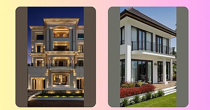 Check out this house, seriously! It looks less like a place you live and more like a castle that accidentally fell out of a fairytale and landed right here. With all those glowing windows and fancy balconies, you’d think actual royalty is having a pizza party inside. This is the kind of luxury dream house where you’d probably need a Segway just to get from your bedroom to the fridge, and the garden gnomes are probably made of solid gold. It’s enough to make your regular doorstep feel like a welcome mat for ants compared to that grand entrance.