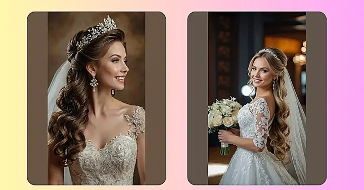 Picking the perfect veil and crown combo is like choosing your superpower for the day. Do you go for a dramatic long veil that flows behind you, making you feel like a total movie star? Or a cute birdcage veil for vintage vibes? And don’t even get me started on crowns – from delicate headbands to full-blown tiaras that scream “I am royalty!” It’s all about finding that perfect touch of sparkle and drama to make your amazing hairstyle shine even brighter as you celebrate.