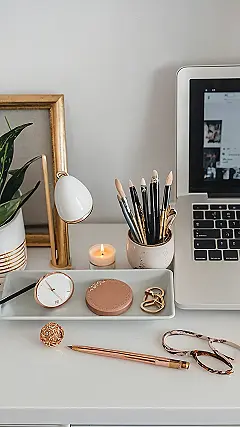 Between the gorgeous flowers (real or not, who knows?!), the fancy gold accents, and that dreamy desktop background, this space screams productivity. It’s the perfect example of how even a small space can become a stylish and efficient study area. Just imagine the Instagram likes you’d get – but more importantly, imagine the amazing work you could accomplish in such a happy, organized environment!