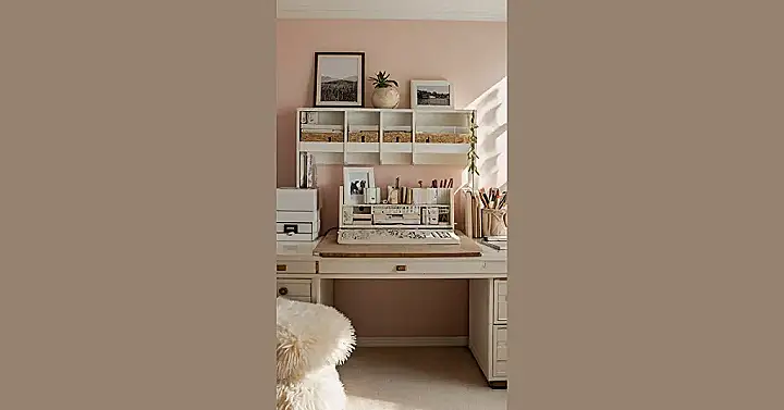 This desk is so organized, it practically *whispers* “tidy room inspiration.” Look at that gorgeous, calming color palette! It’s like a Pinterest board came to life, all pretty pastel pinks and creamy whites. Forget messy piles of papers; this space is all about sleek sophistication. I bet even your most disorganized friend would be inspired to ditch the clutter after seeing this – maybe even inspired to swap out their chaotic desk for a chic, pretty one just like this!