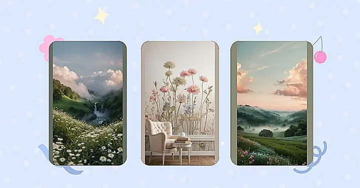 This isn’t just wallpaper; it’s like a secret portal to a giant, super chill flower field! You half expect a friendly bumblebee to buzz by with a tiny message, or maybe a tiny, perfectly dressed garden gnome to offer you a mini croissant. Those pastel pinks, soft blues, and muted greens are so soothing, they practically whisper, “Take a nap here.” It’s the ultimate dreamy aesthetic wallpaper, making your room feel like a permanent spring break, no matter if it’s pouring rain or snowing outside. Plus, all the beauty with none of the pollen – total win for allergy sufferers!