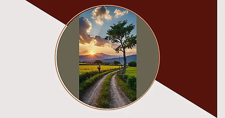 This picture is like a postcard from a fairytale! Imagine yourself strolling down that dusty road, the sun painting the sky in amazing colors, and fields of golden yellow flowers waving hello. It’s the kind of place where you’d expect to see friendly woodland creatures popping out from behind trees, and maybe even a mischievous gnome hiding in a mailbox! Seriously, it’s so beautiful you could almost believe it’s a real-life painting.