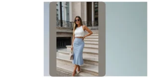 Finding the perfect wedding guest outfit can feel like trying to solve a Rubik’s Cube while blindfolded – you want to look amazing, but definitely not like you’re trying to outshine the bride (unless you secretly are, we won’t tell!). Luckily, this lovely lady in the soft blue lace dress has absolutely crushed it. That delicate floral pattern and elegant midi length scream ‘I’m here to celebrate love and maybe snag a piece of cake without tripping over my own feet,’ which is pretty much the ideal vibe for any wedding party.