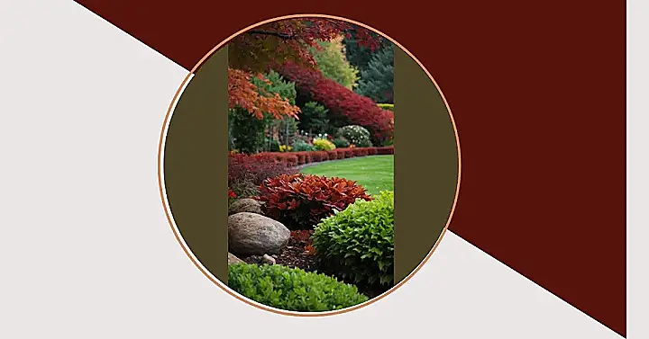 This garden is like a rainbow explosion! Look at all those different shades of green, red, and yellow! It’s almost as if the trees and bushes are showing off their fanciest outfits for a big party. The big red tree in the middle looks like it’s wearing a fiery wig, while the other plants are showing off their fancy patterns and textures.