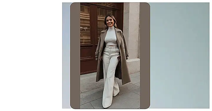 This outfit is giving us major fall vibes, and we’re here for it! Those wide-leg pants and that flowy coat are perfect for keeping warm and looking stylish. And that turtleneck? It’s the perfect way to stay warm without sacrificing fashion. You can totally picture yourself strutting down the street in this outfit, turning heads with your effortlessly cool style.